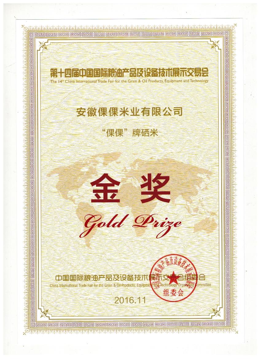 資質(zhì)認(rèn)證 第十四屆中國(guó)國(guó)際糧油產(chǎn)品及設(shè)備技術(shù)展示交易會(huì)金獎(jiǎng)