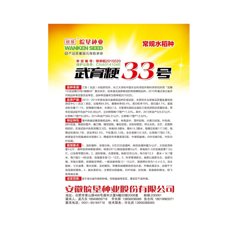 品種審定編號:鄂審稻2015020、(蘇)引種(2018)第059號