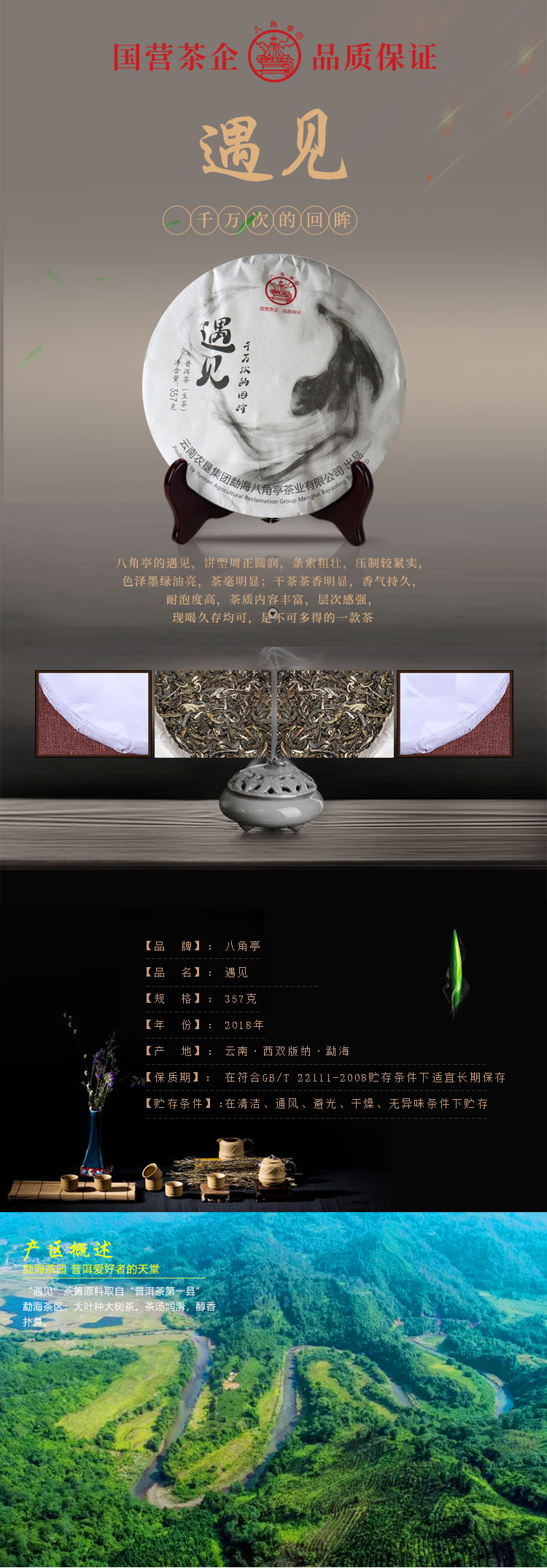 云墾茶業(yè)集團(tuán)下屬茶葉生產(chǎn)企業(yè)——云南農(nóng)墾集團(tuán)勐海八角亭茶業(yè)有限公司原名黎明茶廠,是我國歷史最為悠久的茶企之一,曾位列“中國普洱茶十大知名品牌”“十大最受歡迎茶葉品牌”、“中國普洱茶十大暢銷品牌”中,成為今天市場上最有影響力的品牌之一。公司產(chǎn)品獲得“綠色食品”、ISO9001、 HACCP和云茶品牌(YC)4項認(rèn)證,連續(xù)獲得“云南名牌農(nóng)產(chǎn)品”“云南名牌產(chǎn)品”“云南省著名商標(biāo)”等品牌榮譽,公司生產(chǎn)的多款普洱茶在歷次專業(yè)評比中多次獲得特等金獎和金獎。在2018第五屆中國企業(yè)五星品牌論壇上,云南農(nóng)墾集團(tuán)勐海八角亭茶業(yè)有限公司上榜中國普洱茶行業(yè)影響力品牌——“金芽獎”,公司負(fù)責(zé)人陳勝軍先生獲“陸羽獎”,被授予2017“國際十大杰出茶人”榮譽稱號。