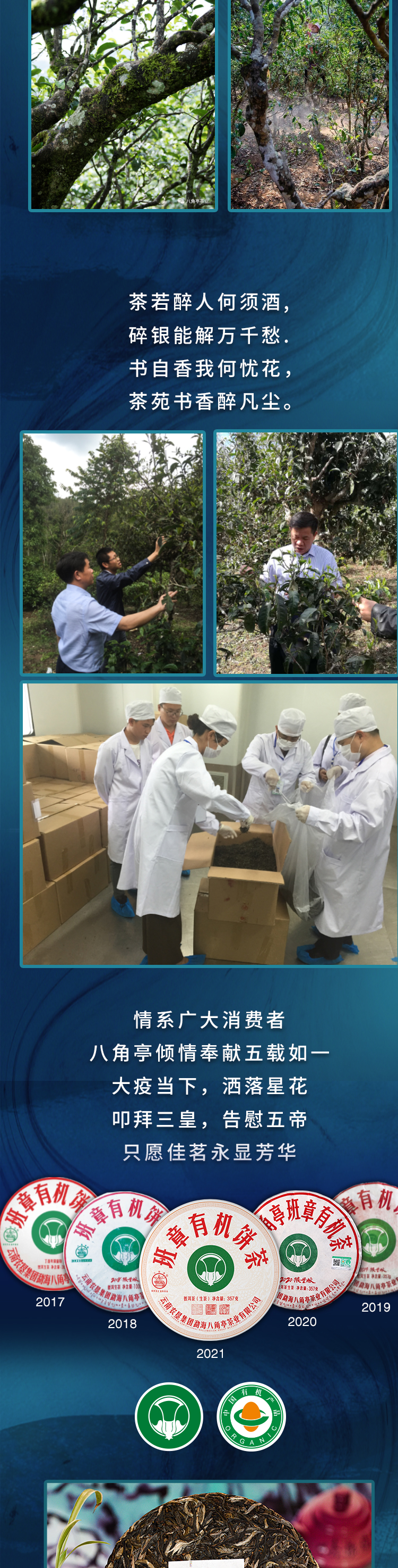 云墾茶業(yè)集團(tuán)下屬茶葉生產(chǎn)企業(yè)——云南農(nóng)墾集團(tuán)勐海八角亭茶業(yè)有限公司原名黎明茶廠,是我國歷史最為悠久的茶企之一,曾位列“中國普洱茶十大知名品牌”“十大最受歡迎茶葉品牌”、“中國普洱茶十大暢銷品牌”中,成為今天市場(chǎng)上最有影響力的品牌之一。公司產(chǎn)品獲得“綠色食品”、ISO9001、 HACCP和云茶品牌(YC)4項(xiàng)認(rèn)證,連續(xù)獲得“云南名牌農(nóng)產(chǎn)品”“云南名牌產(chǎn)品”“云南省著名商標(biāo)”等品牌榮譽(yù),公司生產(chǎn)的多款普洱茶在歷次專業(yè)評(píng)比中多次獲得特等金獎(jiǎng)和金獎(jiǎng)。在2018第五屆中國企業(yè)五星品牌論壇上,云南農(nóng)墾集團(tuán)勐海八角亭茶業(yè)有限公司上榜中國普洱茶行業(yè)影響力品牌——“金芽獎(jiǎng)”,公司負(fù)責(zé)人陳勝軍先生獲“陸羽獎(jiǎng)”,被授予2017“國際十大杰出茶人”榮譽(yù)稱號(hào)。