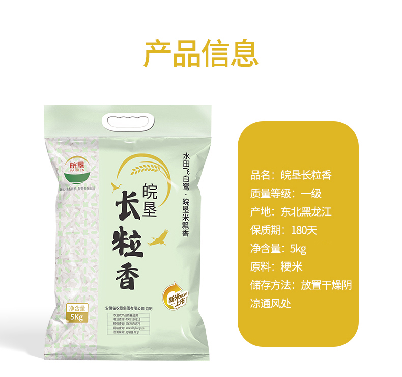 長粒香皖墾 長粒香米東北大米5kg真空包裝